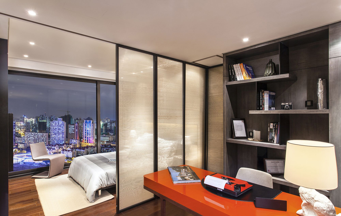 对于卧室和浴室这些连通的空间,使用玻璃隔断的优势在于,套房内充满了自然光,否则可能是无窗的小黑屋。