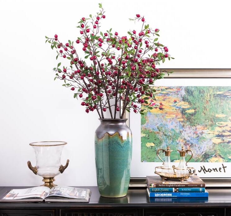 Q手感仿真花艺假花绢花客厅装饰果实果子植物 红色山楂果子T