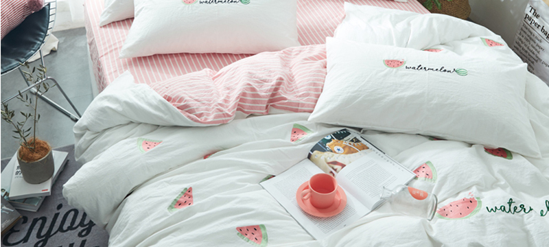 刺绣元素在ins美图中不可或缺更是今年服饰等等领域的一大流行,在这里被誉为ins好物的床品又怎么少的了!选用温润的少女系色彩,背面还有西瓜刺绣,两相组合,巧妙呼应。全棉布艺,手感细腻,品质亲肤。