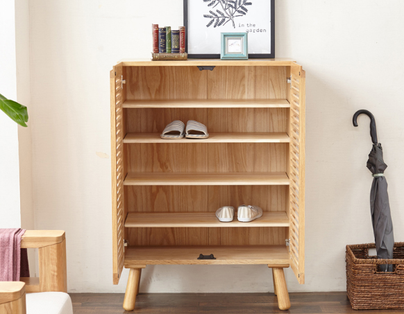 精选北美优质白橡木,辅材泡桐木,木色自然,纹理优雅清新,用料扎实,安心放在室内,会处处散发着自然的原始气息;鞋柜共有4层隔板, 空间也大,每层有3个高度可以选择,你可以根据就家中的鞋子的高度,选择调节合适的位置,百叶窗的柜门,通风透气,保护鞋子不发霉,美观的百叶窗,使柜子的装饰效果也很好。