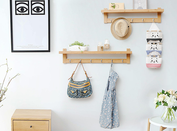 与多数置物架不同,唯妮美极具创意的将挂钩与隔板融合在了一起,这样的设计可最大程度提升实用性。纯天然的优质楠竹,纹理清晰自然,可轻松营造出小清新的感觉。