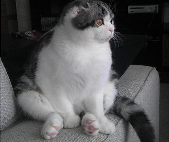 可是后来才知道,猫咪这样坐并不是卖萌,只是因为它是苏格兰折耳猫,天生就有遗传性软骨骨质发育异常。