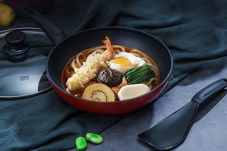 平底锅的设计搭配加深的边缘使其功能性强大,既能煎炒也能焖烧,就连烙饼煮汤也不在话下。锅的内壁进行了沙化处理,将PTFE颗粒分三次喷涂在锅的表面,拥有很强的不粘性能,且耐磨损能力强不易脱落,经久耐用。