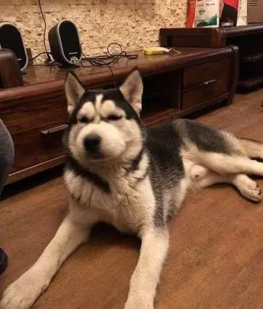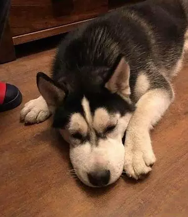 主人回家看到自家二哈脸都肿了,虽说在网上看到误吃蜜蜂的汪脸肿蛮好笑