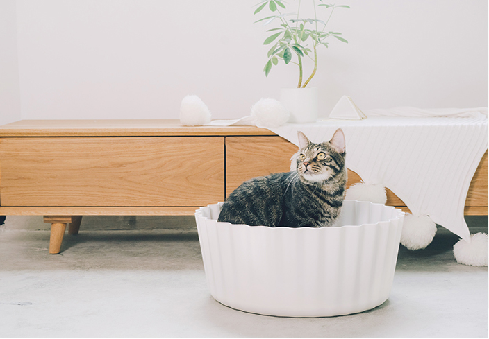 虽然封闭式的猫窝很保暖,但是有些喵主子就是不喜欢, 所以还是选择它们喜欢的东西更好,像这款露天的蛋挞喵窝就很不错喔。