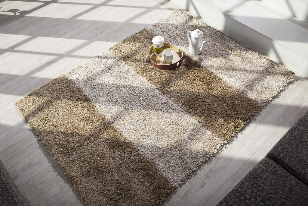 现代简约地毯,时尚混色,亲肤触感,圣瓦伦丁出品。对于质量的把控是从一根纱线开始,精选聚酯纤维,高温染色,然后对纱线进行微处理,使纱支柔软,富有弹性,犹如跳跃的小精灵。