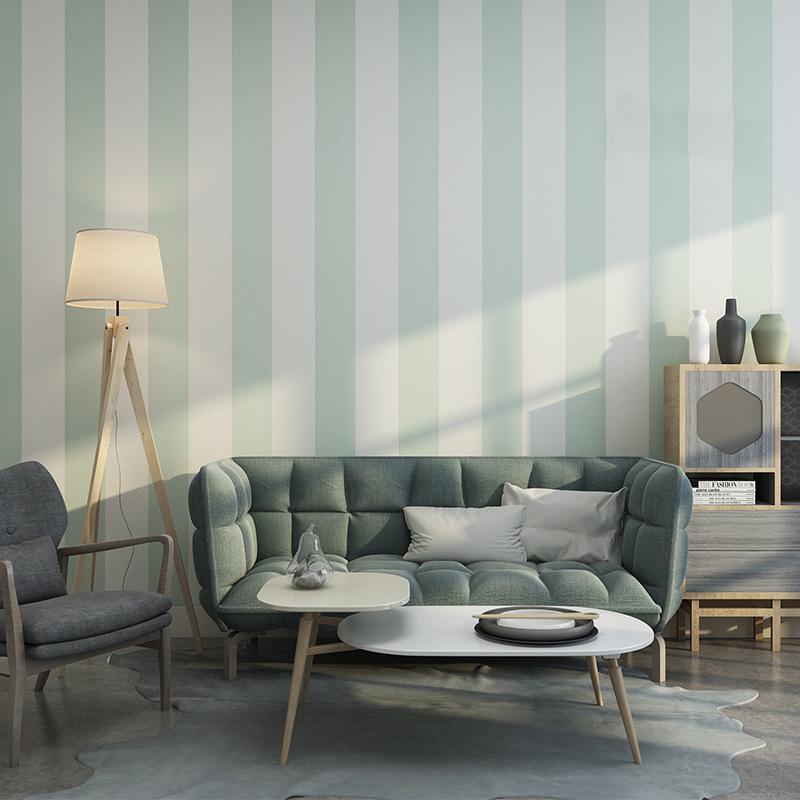 简约咖啡色灰色竖条纹墙纸 客厅卧室电影视背景墙壁纸美式浅绿色