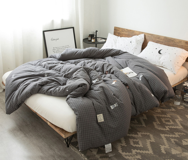ins风卡通刺绣全棉被,填充物为聚酯纤维(整张羽丝绒),轻薄又保暖,被套全棉面料,原本暗色的被子因多了刺绣的点缀,一下子活泼了起来,给整张床增添了几分色彩。