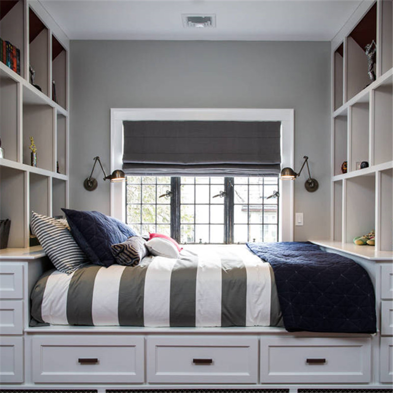 那么怎么才能解决这种问题呢,卧室需要放置的东西实在太多,普通的收纳盒和柜子也满足不了,最好的方法就在在装修时选择一款定制榻榻米,不仅能将空间和柜子融合在一起增大卧室面积,而且收纳能力也很强哦。