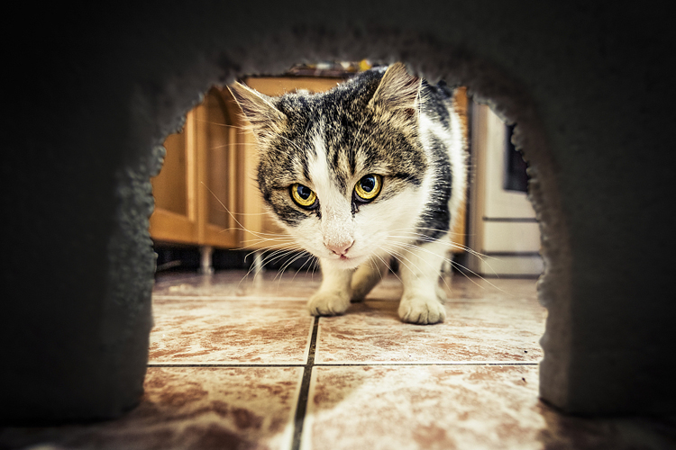 为了让喵陛下活跃起来,得为它带来一点不一样的活动,猫有一种好奇的天性,看见洞口就喜欢往里钻,悄悄放一个“陷阱”,让喵陛下自投罗网。
