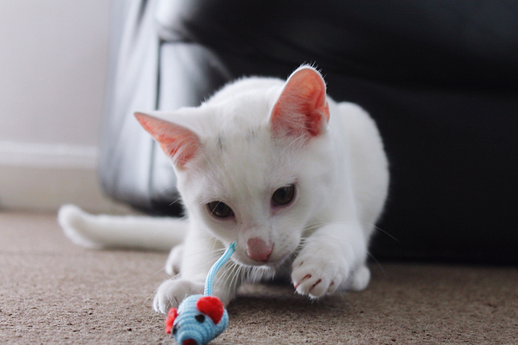 猫是一种心情性动物,开心时就会粘着铲屎官,不开心时妥妥的扭屁屁走猫,它们像个小孩子一样,买玩具给它们就是一个很不错的哄喵手段。