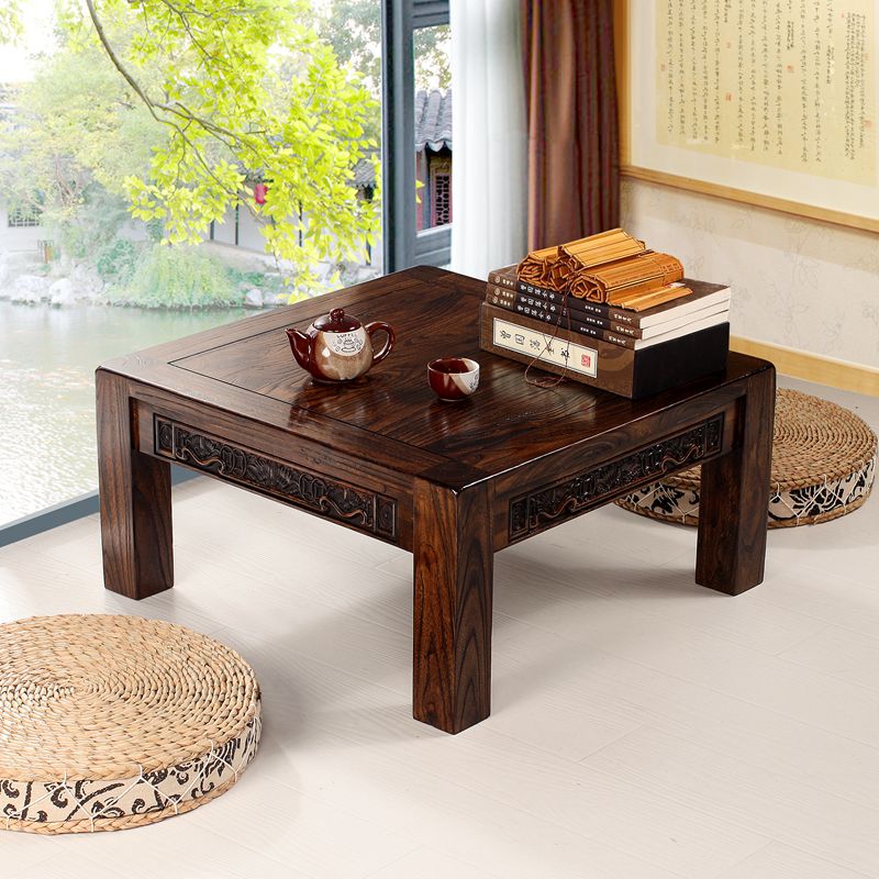 老榆木雕花飘窗茶几