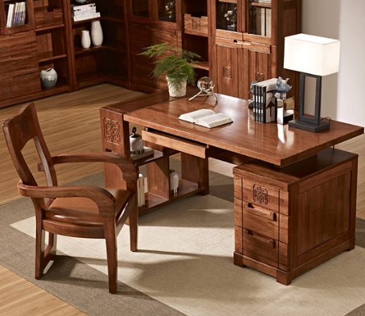 棕红色属于深色系里偏浅的一种,相比色彩浓重的紫檀色,它更有一些原木的气质,书房里使用这样的家具,能够营造出舒缓的氛围,让人觉得舒服。在细节处,它融入了传统图案与雕刻元素,表现出和睦、如意等吉祥寓意,充满东方韵味。