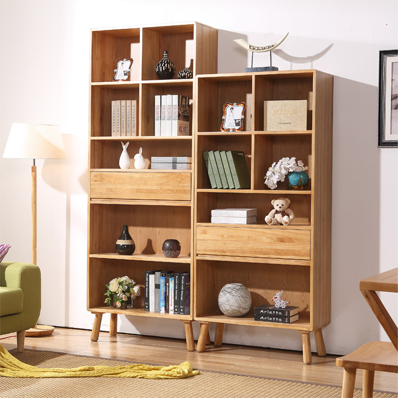 主材选用优质橡木,木质坚硬色泽淡雅纹理美观,开放式喷涂环保漆,保留了原木的肌理与手感,中部大抽屉使用泡桐木防腐变,开放式的储物格更好存放书籍,短小精悍柜腿扎实稳固,给爱书一个安心家。