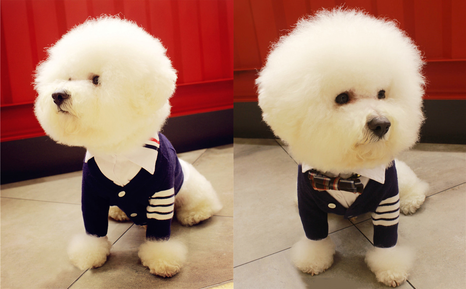 对比大型狗,小编更喜欢泰迪这类的小型犬,泰迪无比纯真的眼神和,萌萌哒的造型,穿上一件V字领的针织开衫加上一个帅气的领结,感觉时尚感也很高。