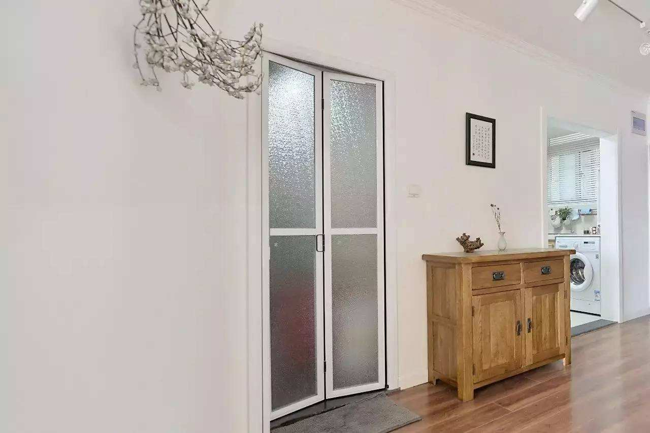 当家里门洞较小无法满足推拉门的常规安装要求, 如果你也不喜欢平开门,这时候可以考虑一下折叠门,因为它可以彻底将门推到一边,还不影响整体的使用。如果家里有个小孩房,卧室的门洞不够大的话,不妨考虑一下这样的设计哦。