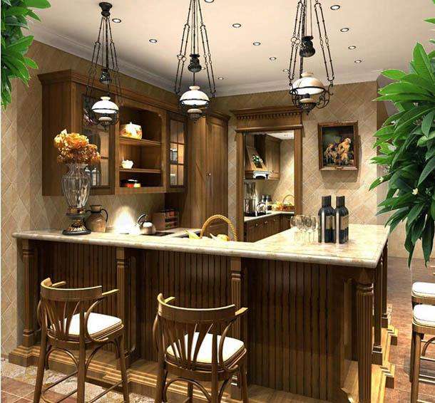 美式厨房往往与吧台相联,在吧台上喝上一杯是很多美国的生活习惯,往往客人来了都会在吧台上饮酒,就像和中国人招待客人饮茶的一样,是礼仪的一部分。