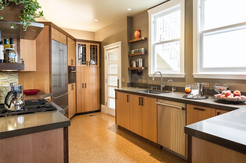 美式厨房强调简洁大方的线条和优雅得体的装饰,家具以实木为主,整体用色偏原木,偏自然,偏大地,保留木材的质感和纹理,体现一种回归自然的生活状态。
