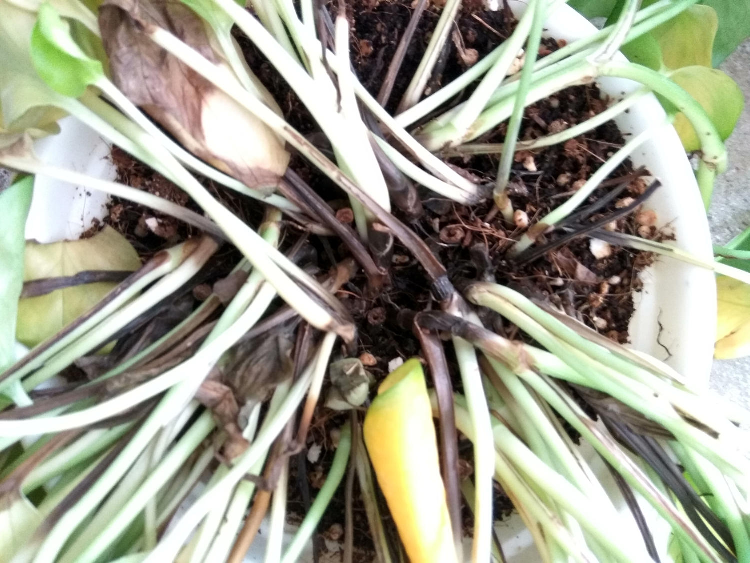 这是使用了尿素颗粒的绿萝,前台不懂,直接用了颗粒尿素,每1盆放10颗,结果不到2天时间就全部变成这样了,总计差不多20盆绿萝,把前台吓住了,所有的绿萝都出现了根系腐烂的情况。
