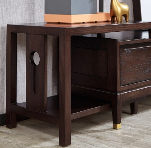 就像这款白蜡木的深檀木色电视柜,方正的外形符合中国人一贯的审美,简约的款式,不仅集成了宋明家具的独特美学,也与世界潮流的北欧风相呼应;电视柜的桌教大胆采用了黄铜包件,就像是给马的蹄子套上了铁掌,颇有几分活泼动感,而金属材质的加入也让整个电视柜显得更加的时尚~