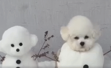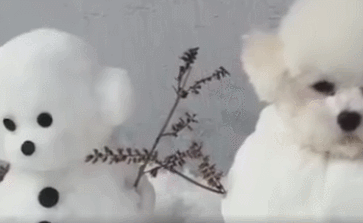 前段时间,各个地区都开始下雪,于是这里就有位宠物主人突发奇想,给自己家的贵宾犬买了件雪人衣服,并且也做了个雪人。
