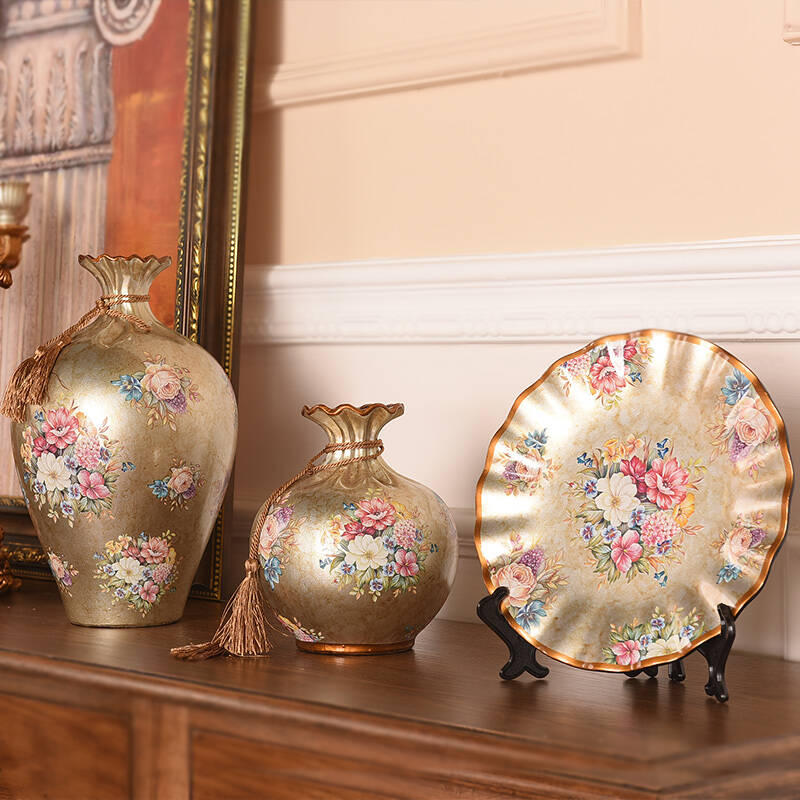 蒂拉欧式陶瓷花瓶装饰摆件三件套工艺品摆件创意家居装饰 富贵金色款