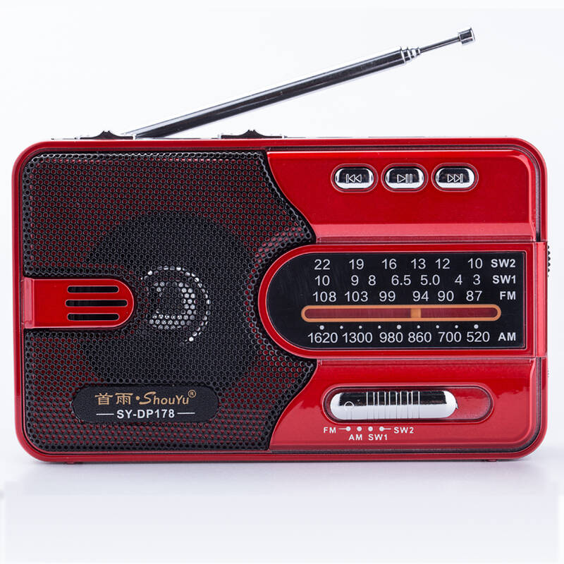 首雨全波段收音机 老年人插卡便携半导体DSP短波FM调频MP3 家用床头微型充电小音箱 升级版DP-178红色