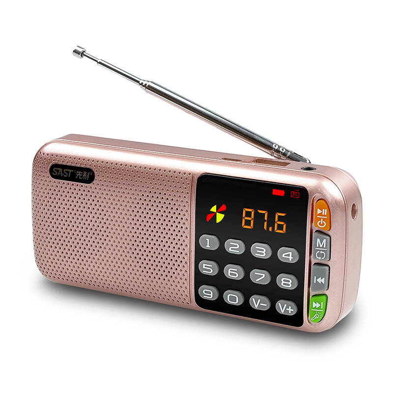 先科 收音机MP3插卡音箱便携式老年人迷你音乐播放器外放小音响广场舞低音炮唱戏机随身听 玫瑰金标配不含卡