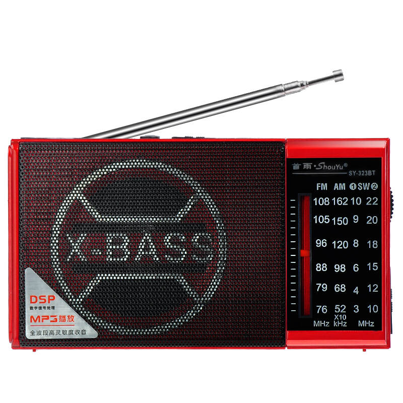 首雨收音机老年人便携式插卡音箱迷你MP3音乐播放器蓝牙小音响全波段收音机随身听 红色