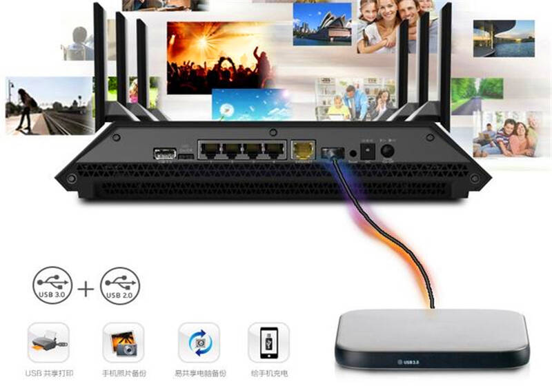 当然,网件R8000并不仅仅只有超强的无线功能这么简单,路由器后侧还配有5个1000Mbps的有线网络接口,两个USB接口(其中一个为3.0),不仅为台式电脑、XBOX、IPTV等设备提供了快速稳定的有线网络支持,还可以让用户随时随地的享受存储存带来的便捷。同时更有家长控制、访客浏览、易共享、云备份等实用功能,无论是家庭还是公司使用,R8000在功能上都可以很好的满足。
