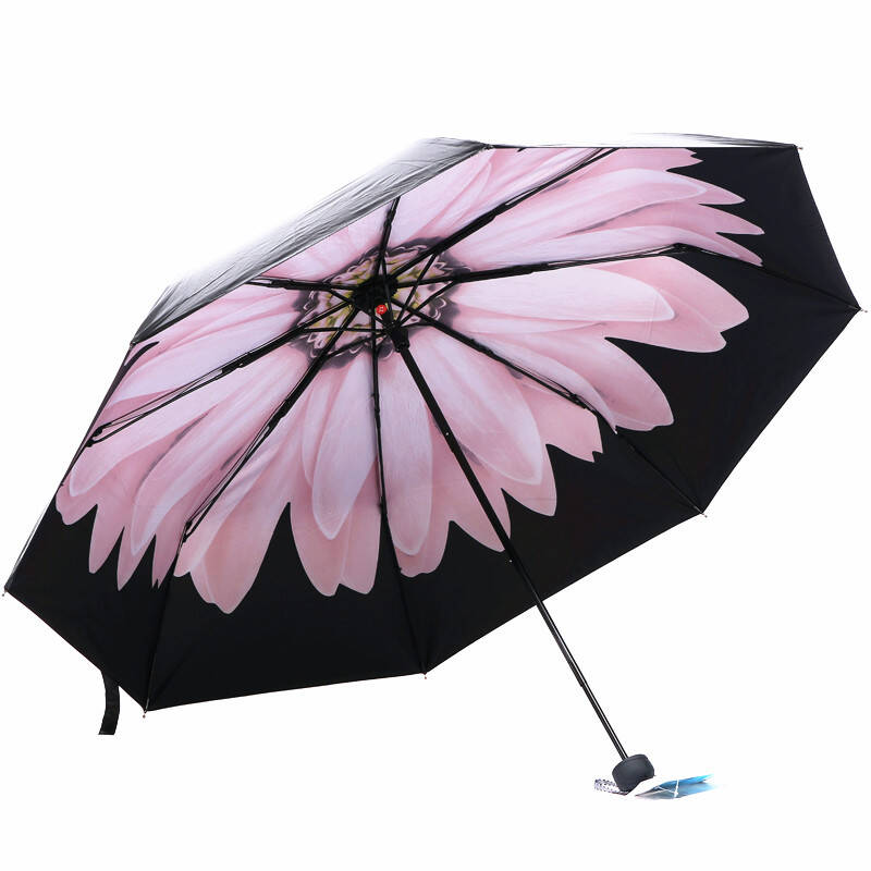 【京东超市】天堂伞 (UPF50+)全遮光黑胶三折小黑伞太阳伞晴雨伞31806E粉色