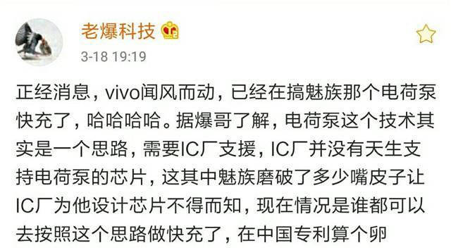 最近魅族搞的55W超级快充技术让无数魅友疯狂了一阵子,但是这个时候不得不告诉你们一个坏消息,魅族又成功了做了一次行业雷锋,Super mCharge快充技术概念又给了国内各厂商创新思路,大电流快充,充电极快,发热量低,对电池损伤低,然后VIVO这边就有了新动作。