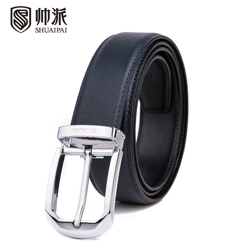 帅派男士正装皮带西裤皮带针扣皮带牛皮男腰带1369 蓝色