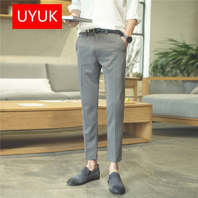 2017新款春夏休闲裤男 九分裤休闲西裤男 灰色 M