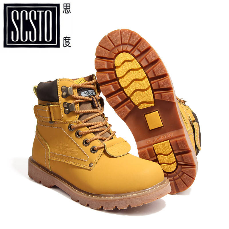 思度 2016秋季高帮大头鞋男真皮英伦工装靴马丁靴黄靴情侣鞋牛皮短靴女靴户外靴 金黄 35