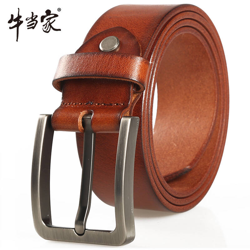 牛当家 男士皮带头层牛皮牛皮皮带真皮腰带牛皮休闲针扣裤带男 皮带 浅咖色-加长140cm