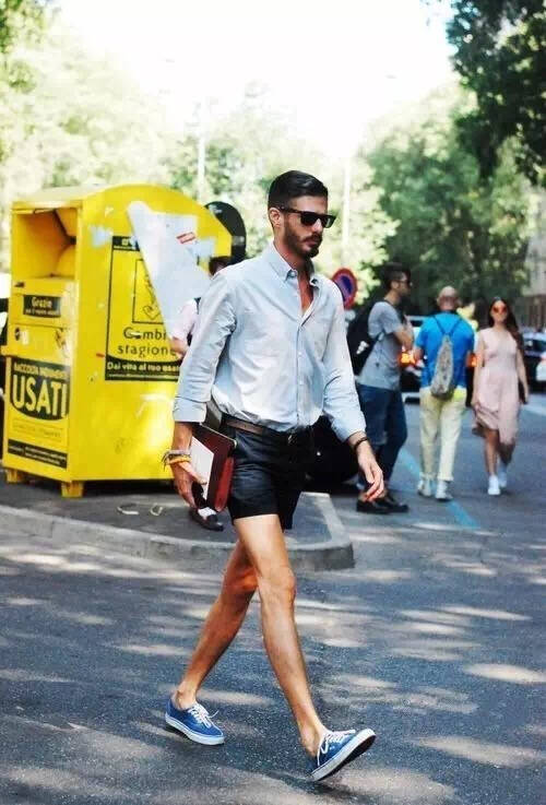 刚才上面白猪也说了,短裤搭配长袖衬衫,也是另一种显高穿法,但在选择短裤时要注意裤管不能过膝,而且千万不要宠爱七分等过膝短裤,因为它会把你的身体分成几截,不仅没起到拉长比例的作用,反而会破坏了你全身的比例。