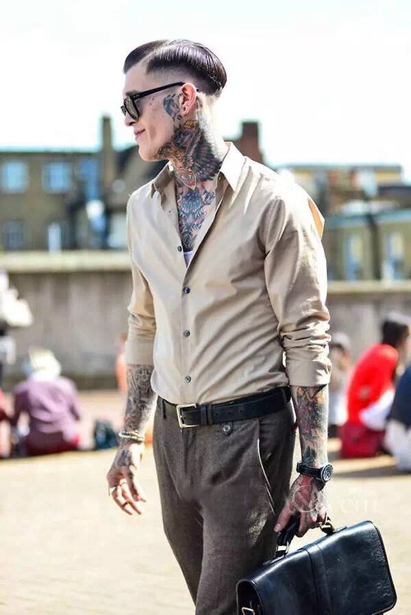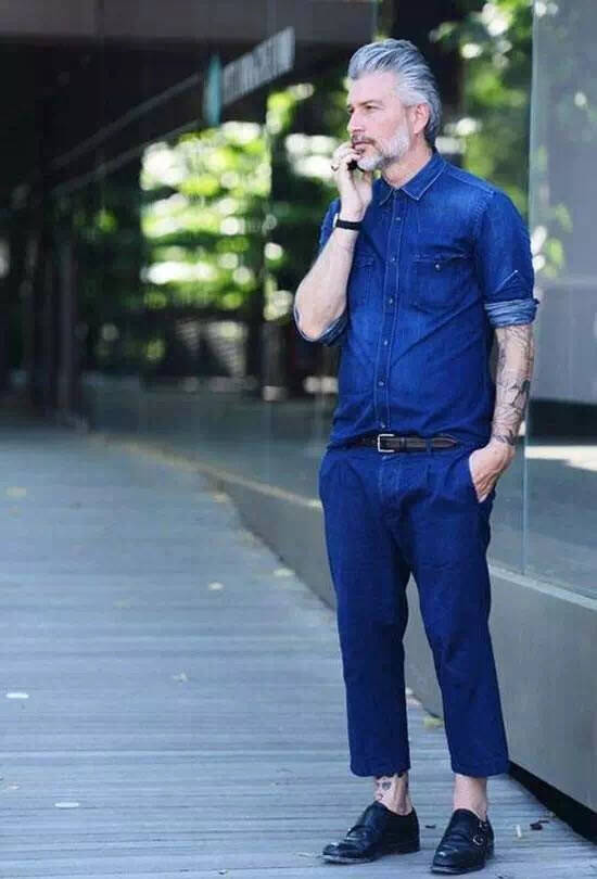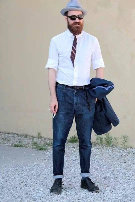 这可能跟很多人说得都不一样。经常都有人警告你说,不要把皮带或者腰带露出来,因为会把身体划分为两截,但其实很多T恤同样也有这个后果。其实选择一条跟自己整体风格相搭的皮带或腰带,并把上衣的下摆塞进裤腰里,让上身不要占到整体的一半比例,就可以形成下身比上身更加修长的效果了。