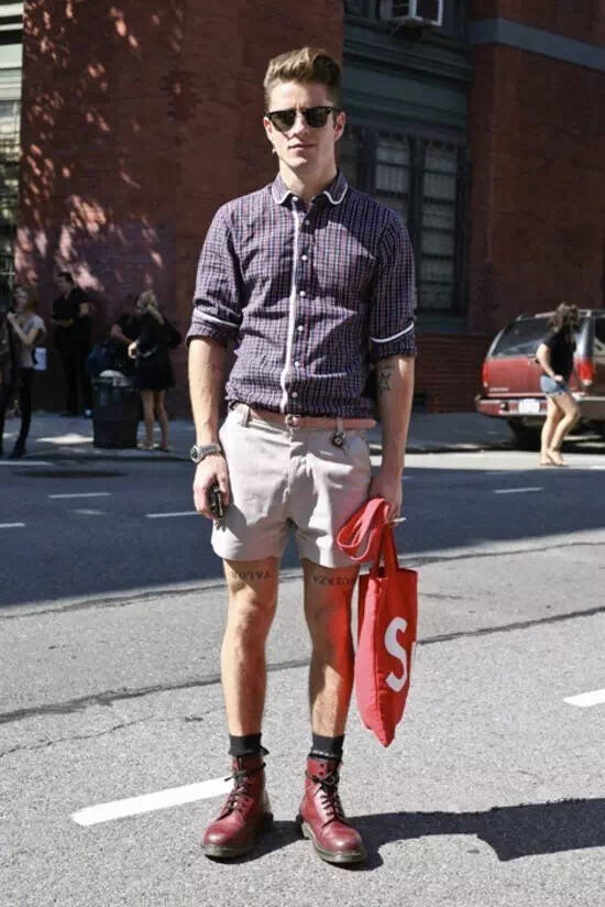 在春夏之际,如果你不怕热的话,选择长款衬衫扎进短裤里,露出皮带进行划分比例,同样也是一种非常不错的显高穿法。