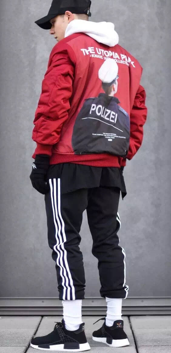 如果你想搭配时下流行的复古运动风,可以选择校服裤搭配运动鞋,同时把裤管扎进袜子里面,同样能延长腿部的视觉效果。