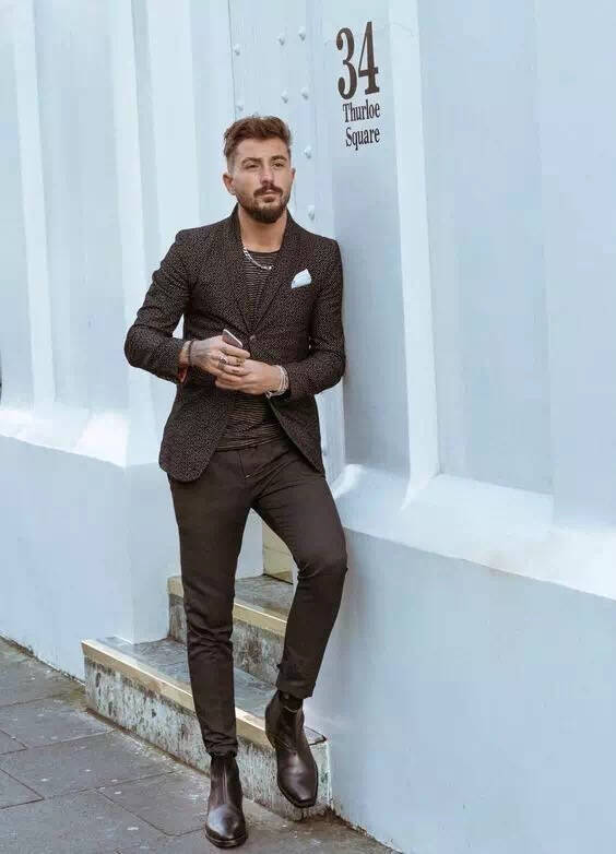 一件西装最合适的长度是它的后摆能盖住你一半的臀部,而大多数人在穿西装的时候,腿部都会被西服“吃掉”一部分。所以如果身材不高挑,又不想穿西装的时候显矮的型男们,最好选择单排扣的西服,只扣最上面那粒扣子,这样可以从扣子划分出比例,形成下身比上身更修长的效果。