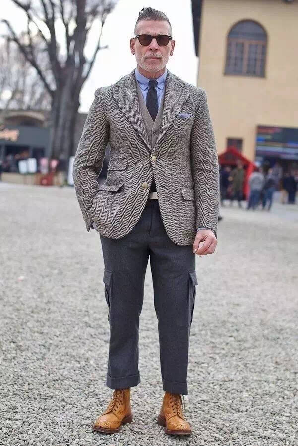 夹克不是风衣大衣,合身甚至是小一点,效果才会更加出彩,跟皮带的修饰效果一样,选择短板夹克同样也是为了让上身不要占到整体的二分之一。