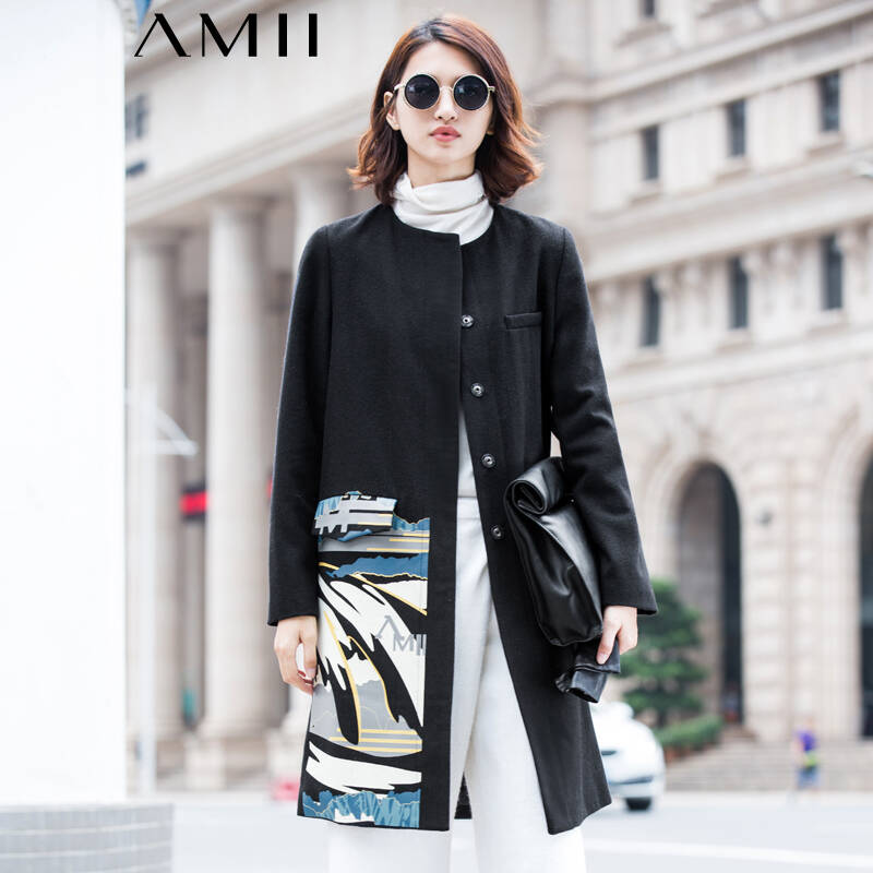 Amii[极简主义]秋冬新时尚印花大码毛呢外套11591997 黑色 M