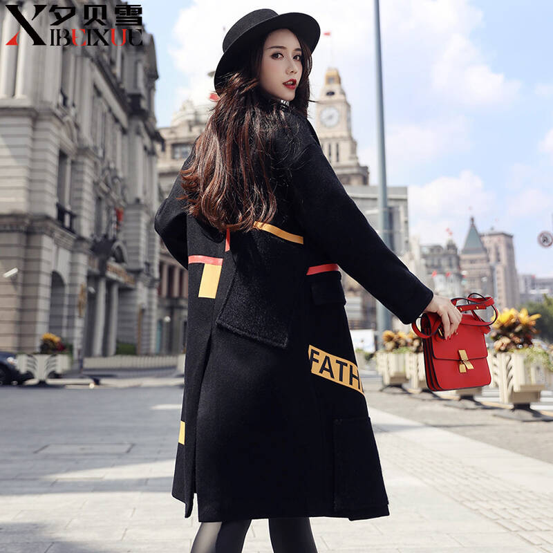 夕贝雪2016秋冬新款韩版毛呢大衣女中长款修身毛呢外套女羊毛呢子大衣 黑色 M
