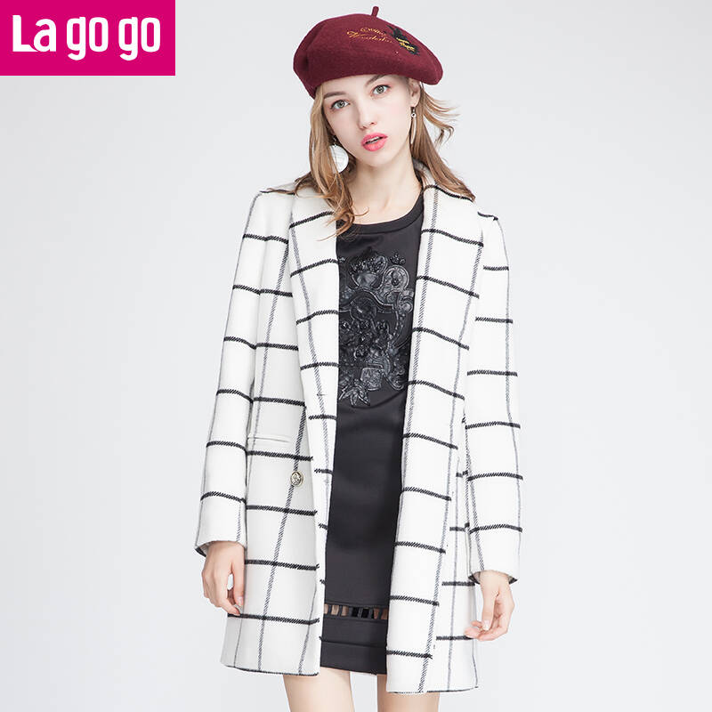 Lagogo/拉谷谷 新款翻领格子印花中长款长袖大衣EDH974B347 混色(00) M