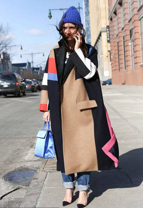 服装搭配中一向讲究色彩运用,而很多人都觉得色彩搭配很难。现在许多大衣都出了拼接色的款式,无需我们动脑去色彩搭配,只要往身上穿就可以达到时尚的效果。