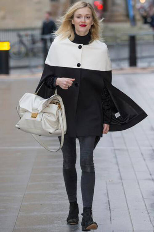 黑白拼色的斗篷大衣,让造型看起来简洁利落,并且斗篷外套可以穿出气质和气场,是提升造型层次感的绝佳单品。