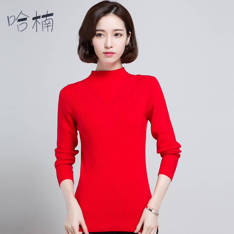 哈楠针织衫女套头2016新款毛衣女套头打底针织衫线衫 红色 S