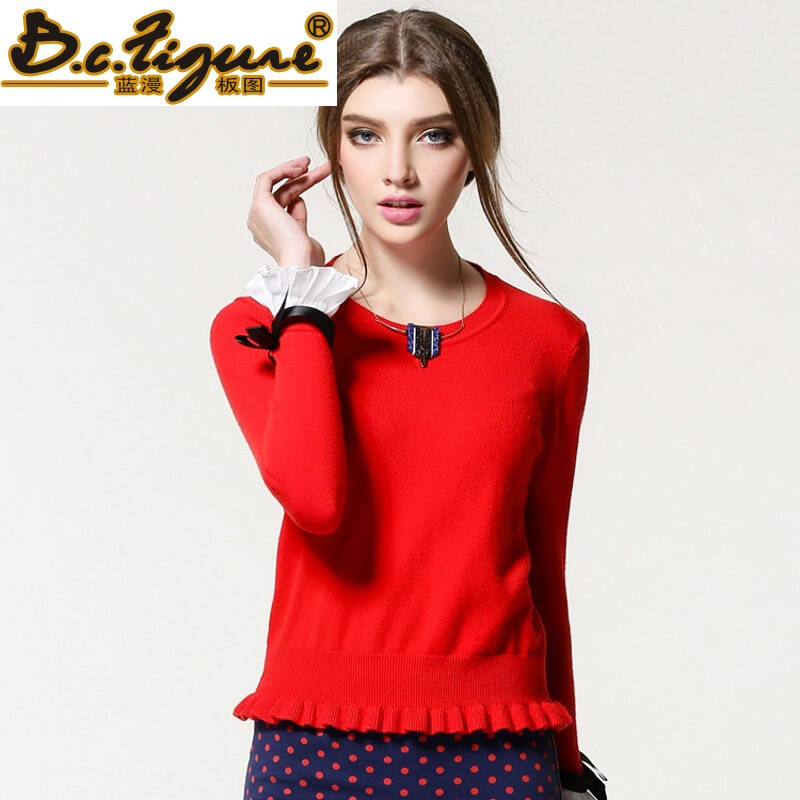 蓝漫板图*日韩圆领针织衫 女式长袖蝴蝶结针织衫 女日式木耳毛衣针织衫艾维