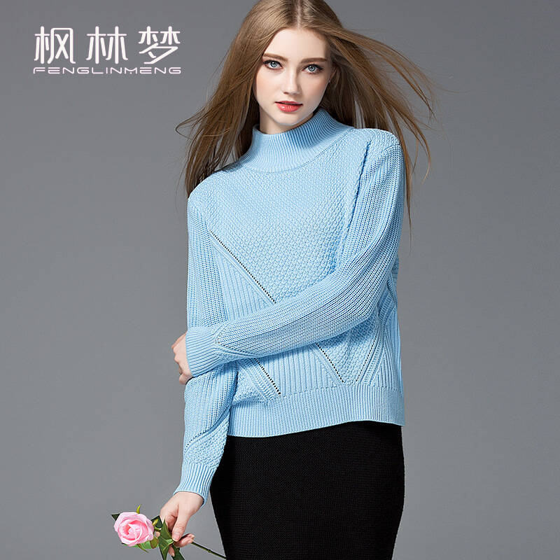 枫林梦2016秋冬新款女装高领毛衣女针织衫女套头打底针织衫 蓝色 M